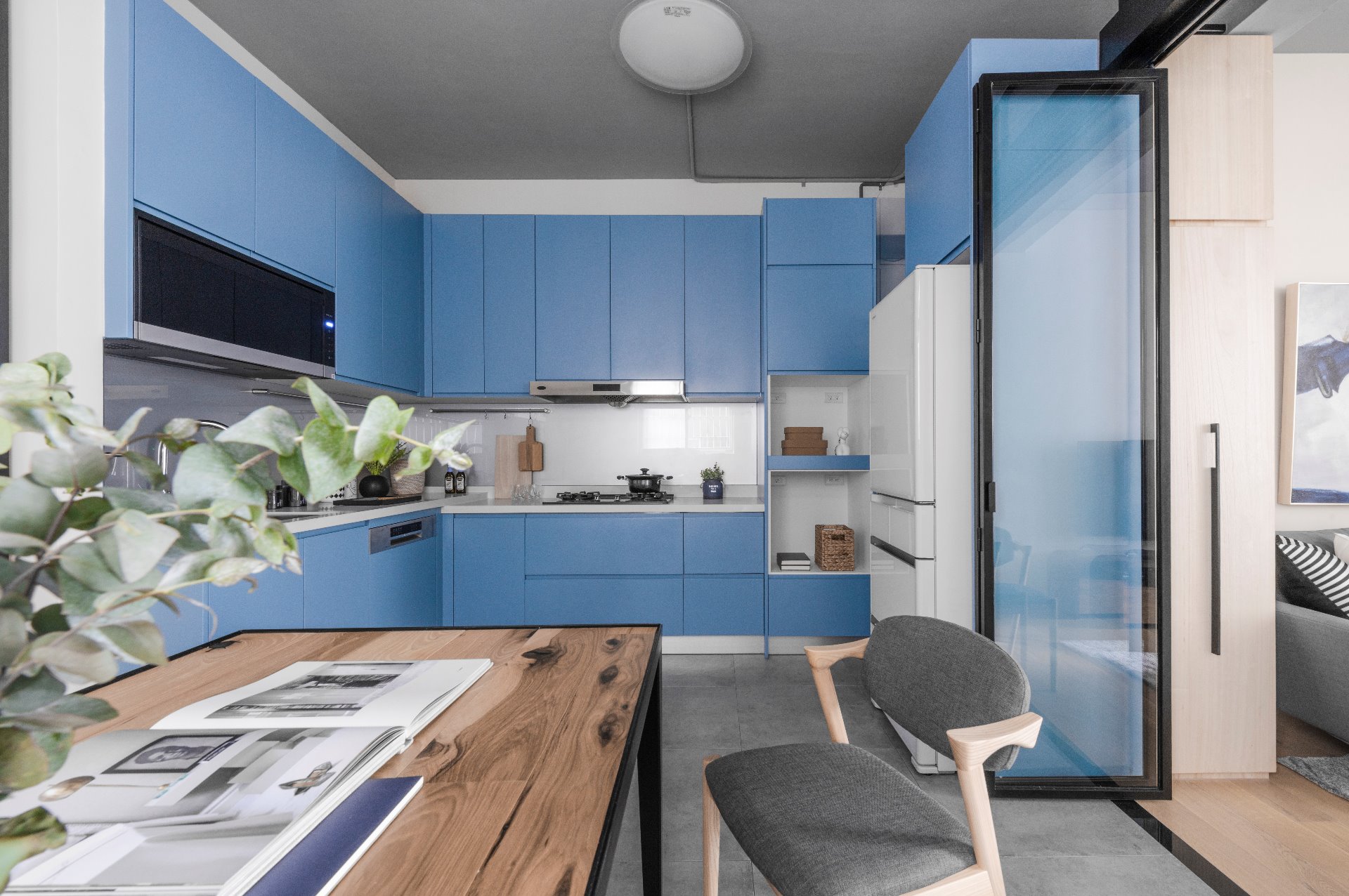 廚具櫃體使用藍色作為重點,清爽帶有精神的色系為廚房增添亮眼的元素,且恰如其分的融於空間 ▲