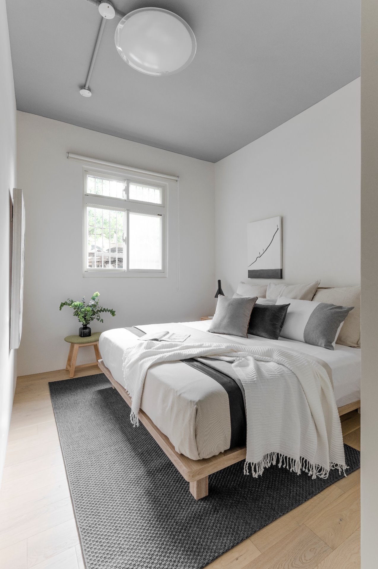 以灰色配白色為基底定調,盡可能不做過多裝飾來打造簡約舒適的主臥空間 ▲