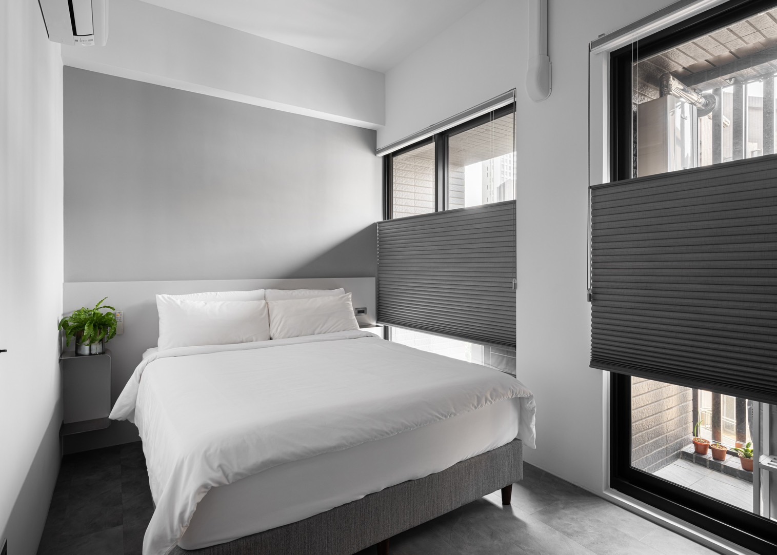 ▼採光充足明亮的臥室搭配淺灰色佈局,給人純粹乾淨、清爽的視覺感受。